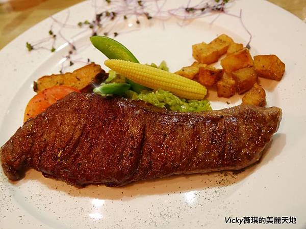這款主餐為香煎美國肩胛牛佐胡椒(NTD 480)