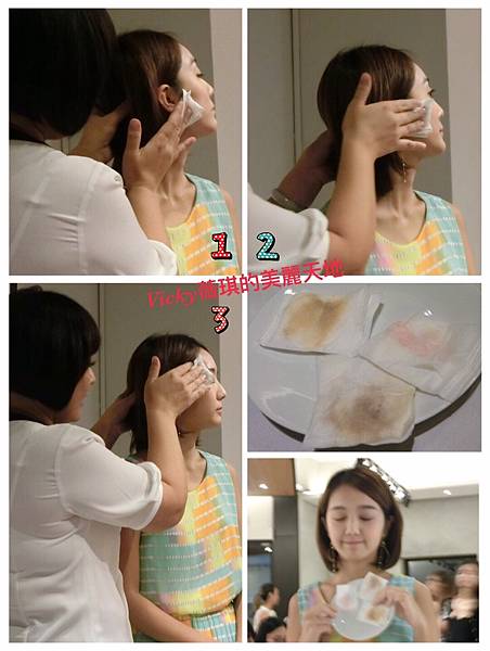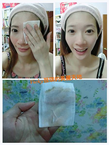 在彩妝比較濃的地方(眼影/線、睫毛膏、脣彩)溼敷10多秒(如下圖1、2)