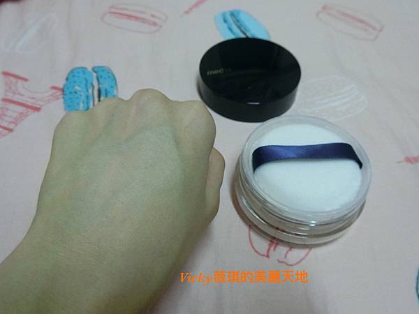蜜粉細緻透白,散開後幾乎看不出來