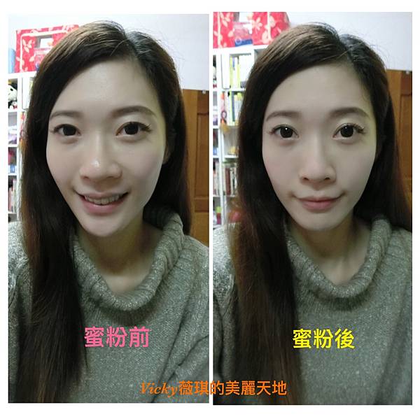 可以明顯發現使用蜜粉前後的不同