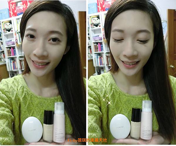 薇琪建議可以CC慕斯和粉底液擇一來搭配晶透粉餅比較剛好唷![]()