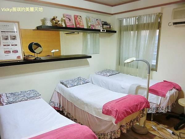 客廳書架上有很多關於美容的書籍