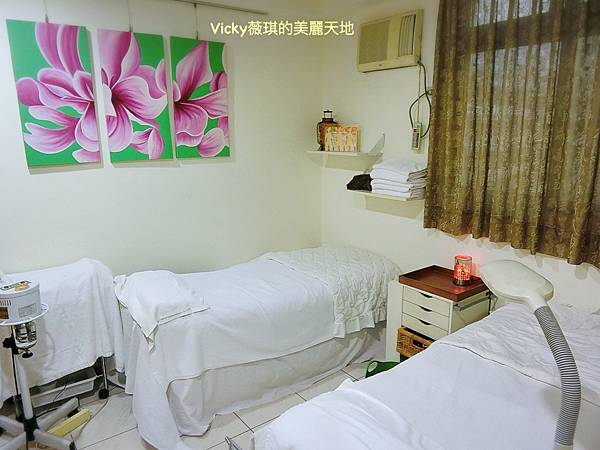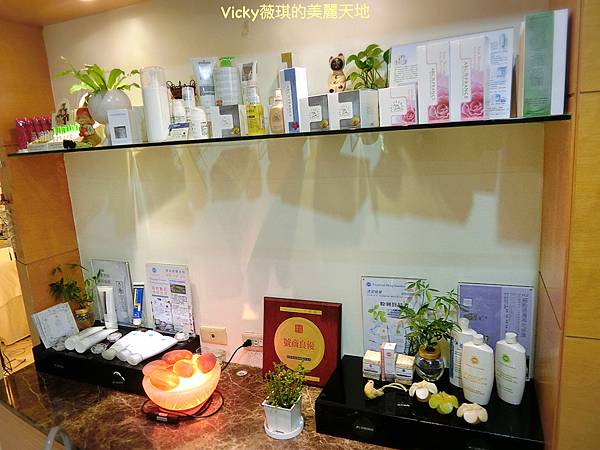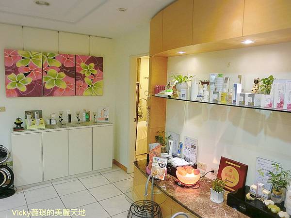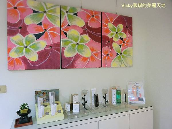 櫃子上陳列著工作室使用的美容產品