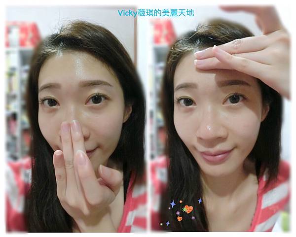 鼻頭、額頭及T字部位也要順著肌理擦拭