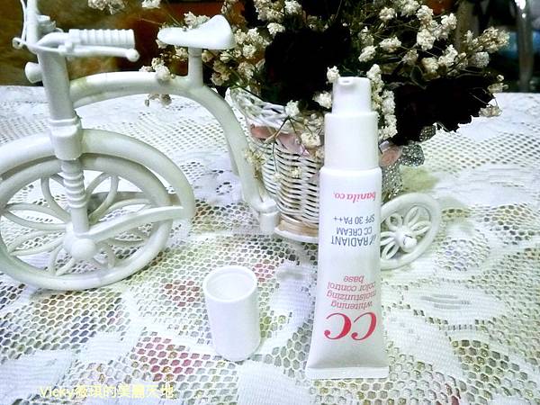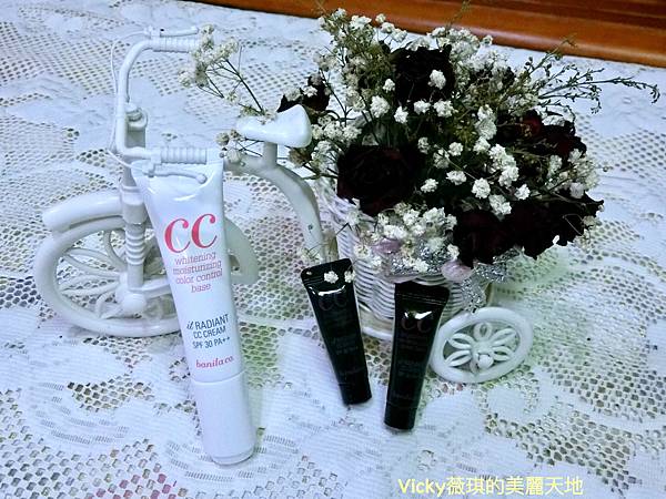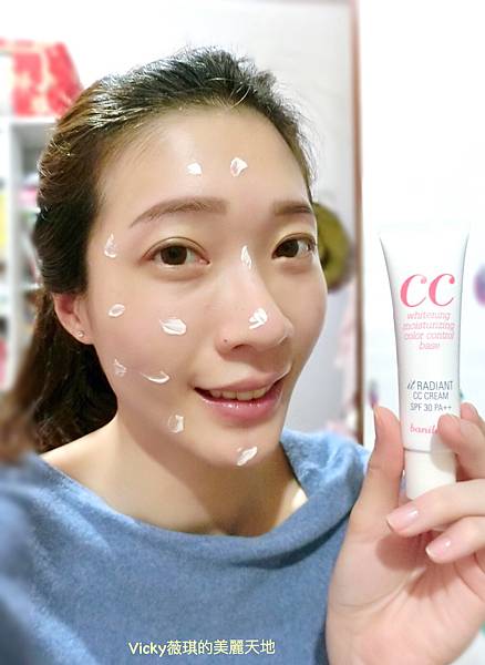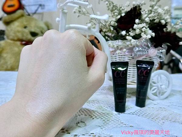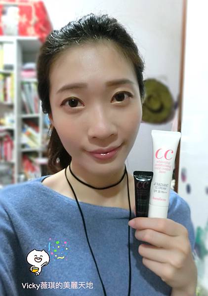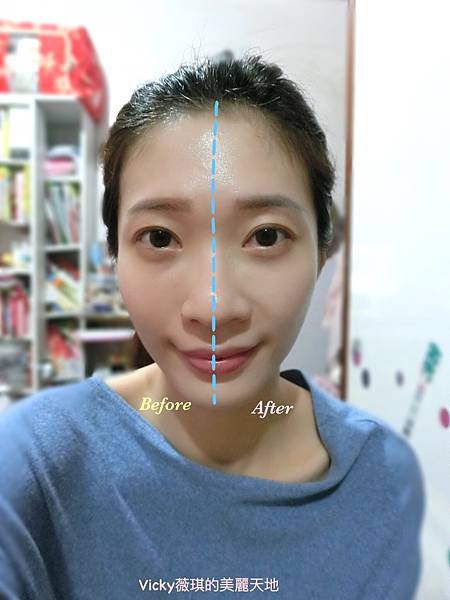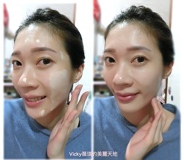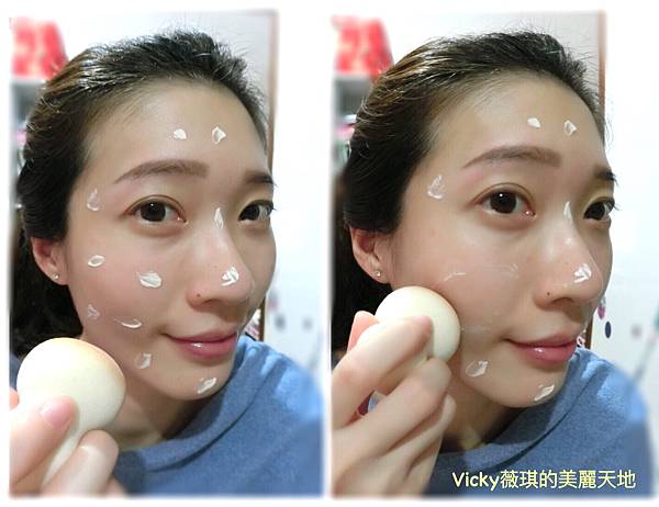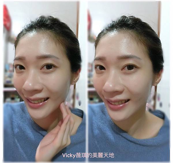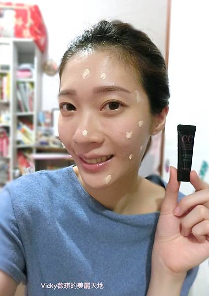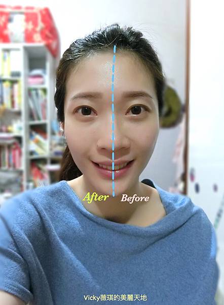 右半邊擦上了光透無瑕CC霜(黑CC)