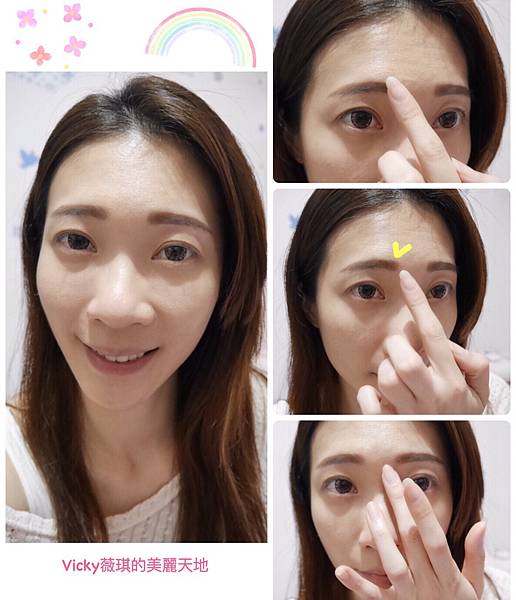 1. 眉頭-想像一條直線從嘴角往上到鼻翼,再經過眼頭上去