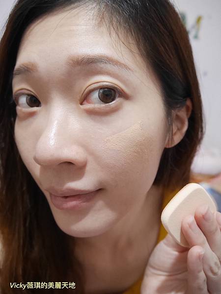 如下圖,可以明顯看見有上粉霜的部位完全被遮瑕了