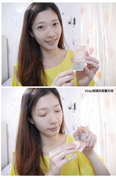 粉餅的質地很特別,帶有一點溼的水感摸起來很絲滑