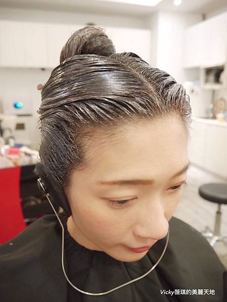 然後戴上很像耳機的護耳罩準備來染髮了![]()