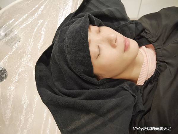 接著用熱毛巾包起來讓頭髮好好修護補水