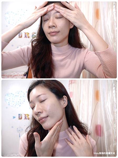 早晚洗完臉後於化妝水之後使用,口訣是:1搖2拍3畫圓