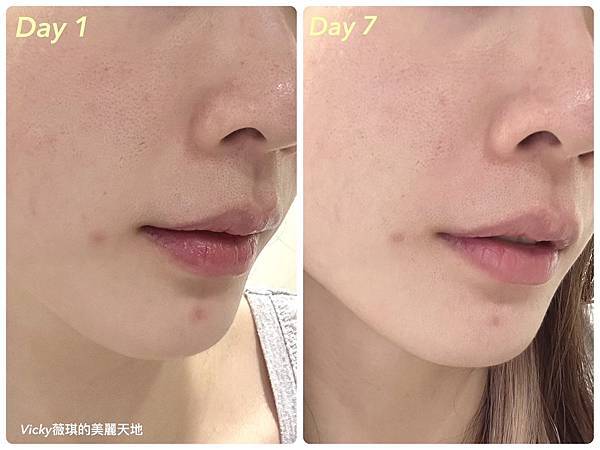 差不多一週的時間就可以從紅腫痘子代謝變成平坦的痘疤
