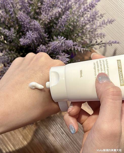 軟管瓶身,取適量約1~2公分的洗顏霜