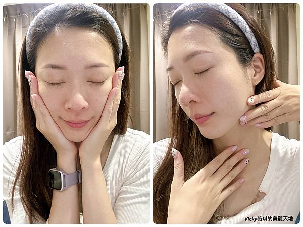 輕柔的拉提,讓整體臉部線條往上提起來~