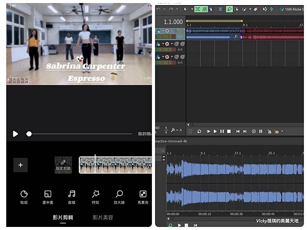 平時也需要看影片編舞、聽音樂、剪接影片、製圖等等