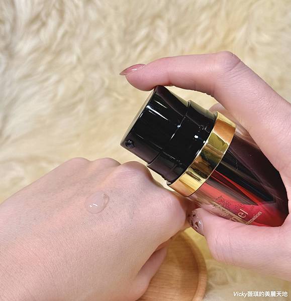 2.使用時可將瓶身傾斜,以拇指按壓壓頭,好施力且減少精華沾附外瓶。