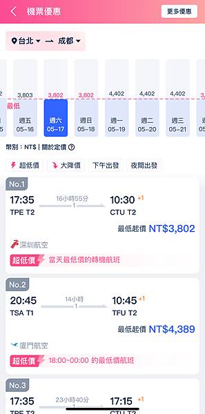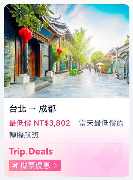 便宜機票搶先看:立馬搜尋飛台灣-成都的限時優惠活動
