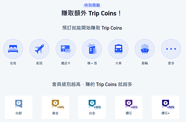 白金會員:下單最多賺取 30% Trip Coins
