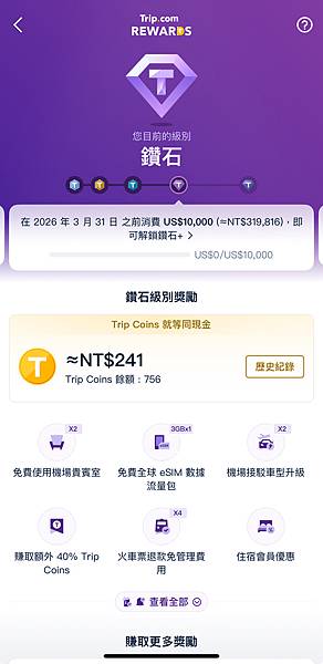 鑽石會員:下單最多賺取 40% Trip Coins