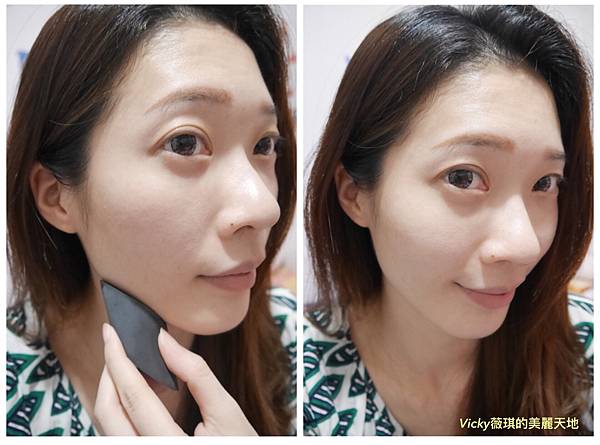 可以看見下圖虛線右邊的肌膚變得水透又有光澤感![]()
