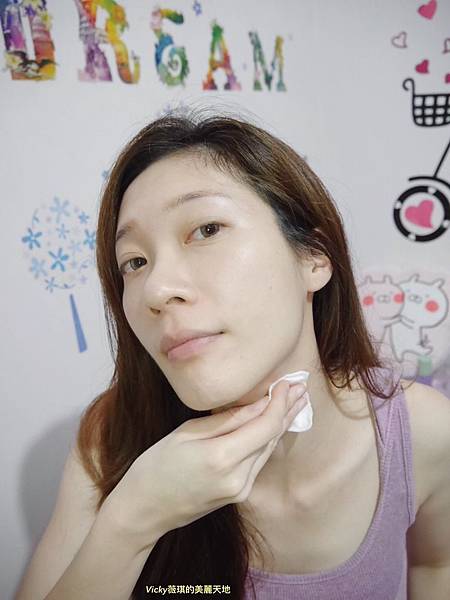 輕輕擦拭全臉,由下往上拉提並避開眼睛和唇部![]()